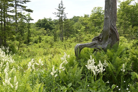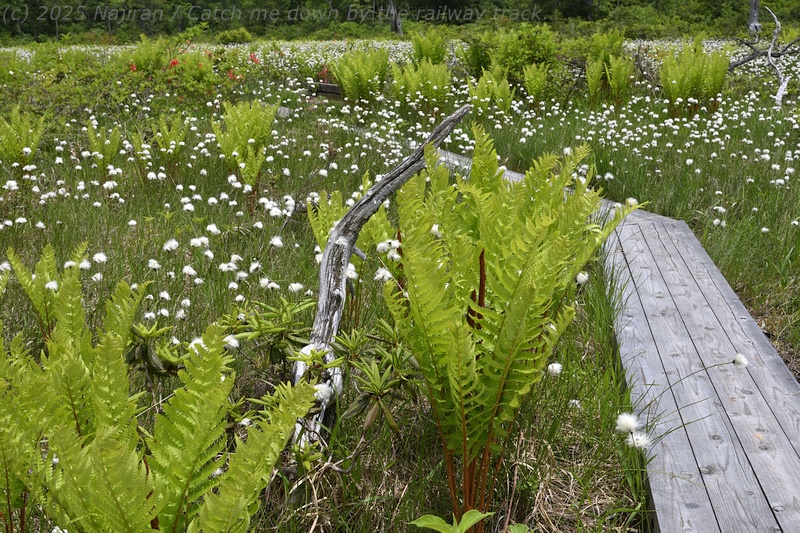 野岩鉄道の6050系を撮影していましたが、4時間ほど空き時間ができたので、久しぶりに駒止(こまど)湿原を訪ねることにしました。 駒止湿原は大半が福島県大沼郡昭和村にあり、一部が南会津郡南会津町にまたがる高層湿原です。 湿原の標高は約1,100mで、冬季の積雪は3~4mにもなります。 湿原は大谷地、白樺谷地、水無谷地の3つからなり面積は約27haで、それに周辺の森林を含めた約148haが国の天然記念物に指定されています。