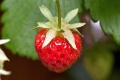 野良苺のその後 温室ではないので寒さに向かい調子がよくなく、2月下旬まで悶々とした日々が続きましたが、3月中旬になり立派な花が復活。5月に入って次々と苺が赤くなり庭と食卓を飾ってくれました。