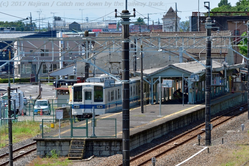写真右手には、1489年に富岡直光が築城した「小泉城」跡(堀の一部と土塁)が、城之内公園として整備されています。外堀には桜が植えられていて、花の時期には電車とのコラボも期待できそうでした。