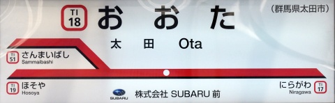 太田駅にはSUBARU群馬工場があり、駅名票にもSUBARUの名前が書かれています。
