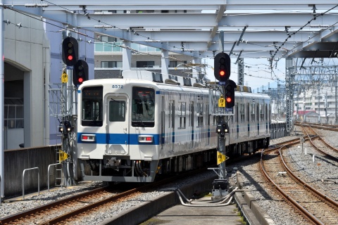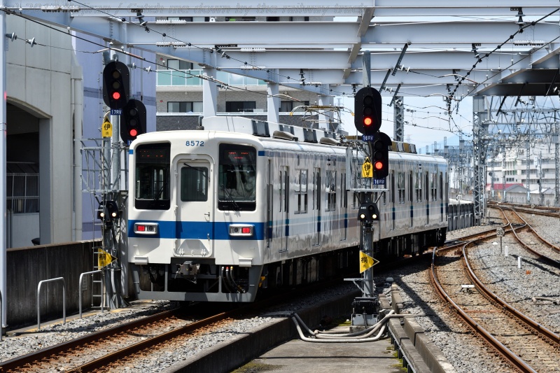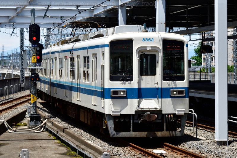 △ 6番線から発車した赤城行の8000系を見送り。 モハ8672+クハ8572、太田駅構内。[2017.06、群馬県太田市]