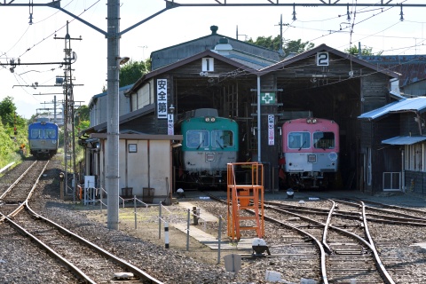 トラス構造を採用した木造板張りの電車庫は、上毛電鉄開業当時からの希少な建造物の一つで、今でも電車庫として利用されています。