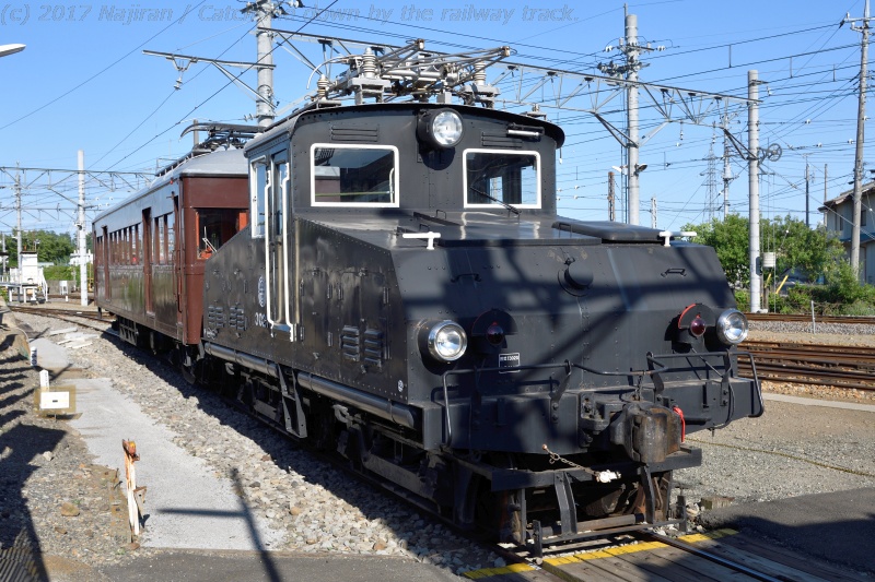 デキ3021は、東京横浜電鉄(東急東横線の前身)が貨物列車用に発注した凸型電気機関車で、1929年(昭和4年)に川崎車輛製で製造後、東急東横線の電気機関車として活躍しました。貨物列車の廃止後は、工場の入れ替え用として使用されてきましたが、車籍除去後の2009年に動態保存を目的に上毛電気鉄道へ譲渡された車両です。なお、上毛電鉄では車籍を有しないため本線の走行は出来ませんが、車庫線内の運転はあるようです。