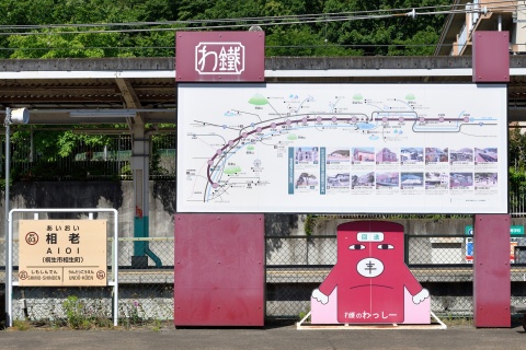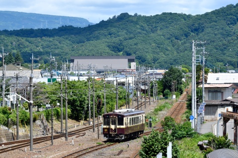 相老(あいおい)駅は東武桐生線とわたらせ渓谷鉄道の接続駅で、駅業務はわたらせ渓谷鉄道が行っています。駅近くの跨線橋からは、駅構内越しに赤城山を見渡すことができます。