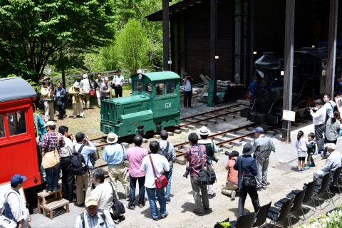 このほか、ボールドウィン製蒸気機関車、協三工業製ディーゼル機関車や運材台車など車両の展示、車両の復元の様子やよみがえれボールドウィン実行委員会の日ごろの活動(根利の森林鉄道調査など)の紹介、さらに、林業機械の展示などがあり、充実した訪問になりました。