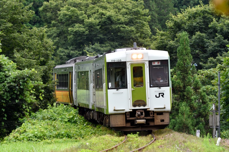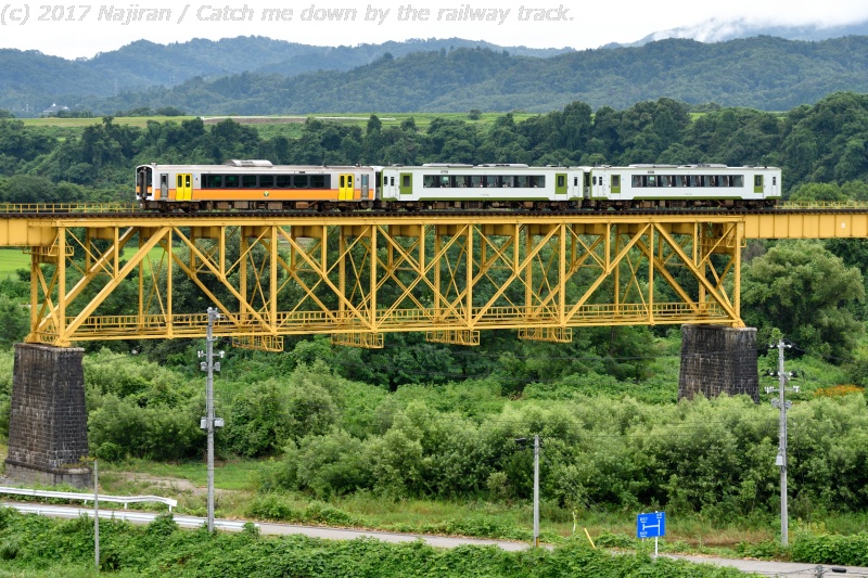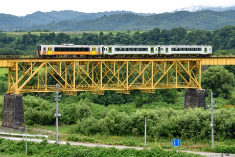 キハE120を先頭に一ノ戸川橋梁を渡る快速あがのです。