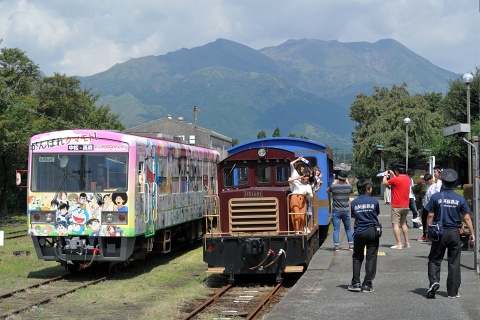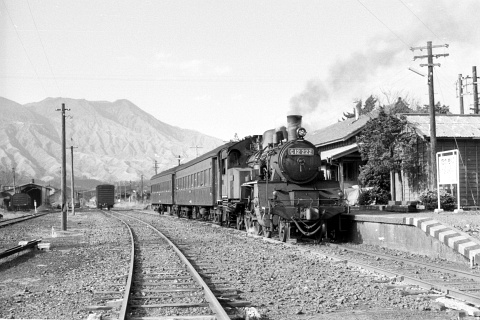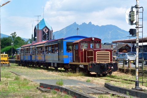 高森駅で発車を待つ立野行の列車、C12222ほか。
