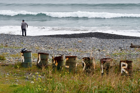 「ありがとうJR」と書かれたドラム缶が並んでいます。 東日本大震災で一時全線不通になっていた八戸線は、軌道の補修や72か所の津波避難通路を整備して、翌年の2012年3月に全線で運転を再開しました。 このモニュメントは、八戸線の全線運転再開に感謝して地元の方々が作ったものだそうです。