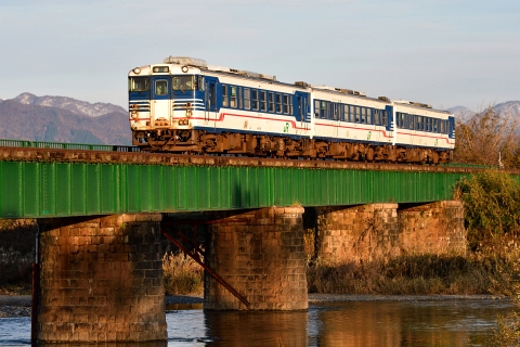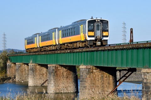 △ 磐越西線 140M、快速あがの 会津若松行、キハE120-2ほか。 [2017-11、新潟県五泉市]