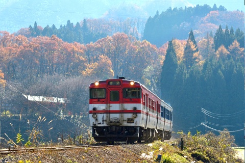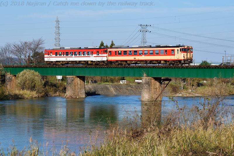△ 磐越西線 232D、会津若松行、猿和田-馬下、キハ47 1513 + キハ47 521 (後追い) [2017-11、新潟県五泉市]