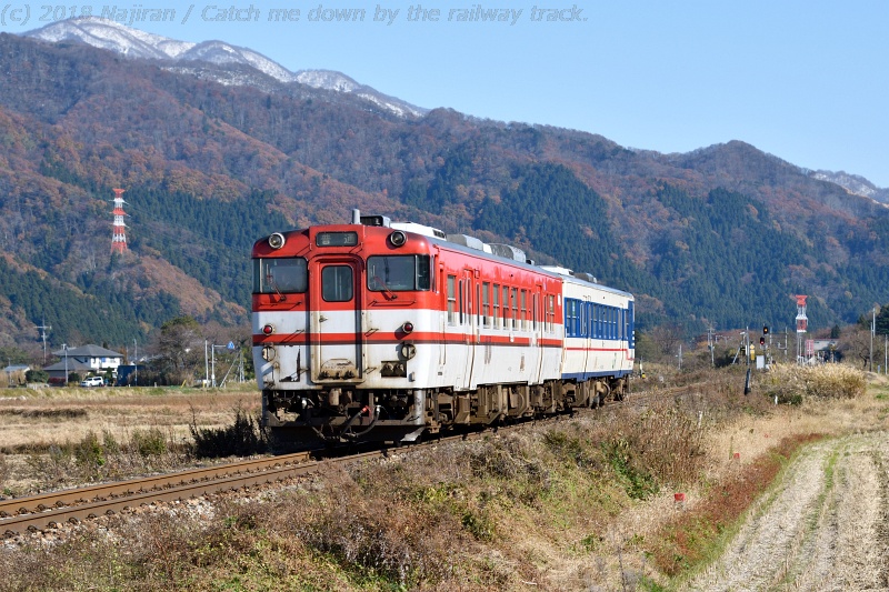 △ 磐越西線 223D、新津行、猿和田-五泉、キハ40 587 + キハ48 523 (後追い) [2017-11、新潟県五泉市]