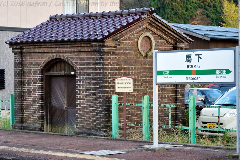 馬下駅には、イギリス積みの煉瓦が美しいランプ小屋が残っています。