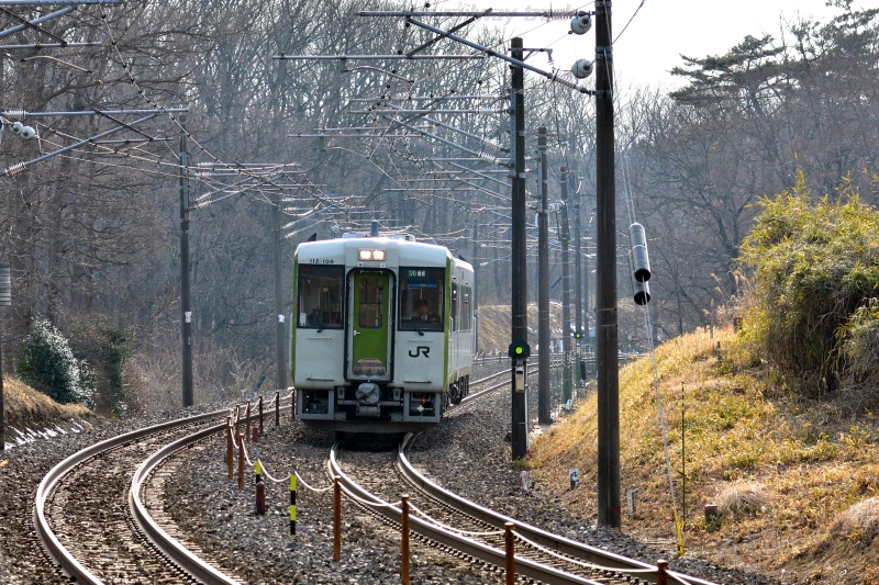 交直流電車には常磐線と共通運用の勝田電車区531系の付属編成が、気動車には郡山総合車両センター (仙コリ) のキハ110系がそれぞれ使用されていますが、531系の運用は朝夕が中心で昼間はもっぱらキハ110系の2連が黒磯-新白河間を往復しています。