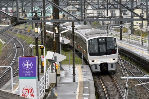 発車を待つのは、鹿児島本線下り列車が発着する1番線の博多側にある切欠きホームの0番線で、鹿児島本線よりかなり低くなっています。