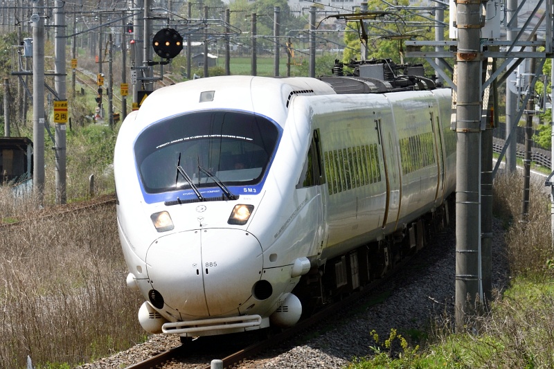 吉野ケ里歴史公園一帯は丘陵地帯になっており、丘陵のほぼ南側の縁を長崎本線が通ります。 長崎行、佐世保(ハウステンボス)行の特急電車、新旧の形式の普通電車に鍋島行の2本の定期貨物列車を加え、結構な頻度で列車がやってきます。
