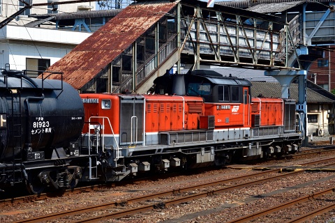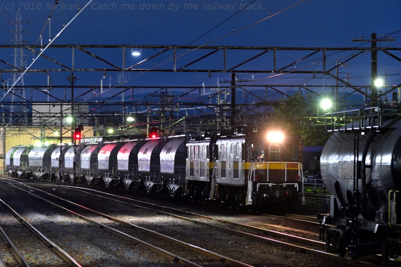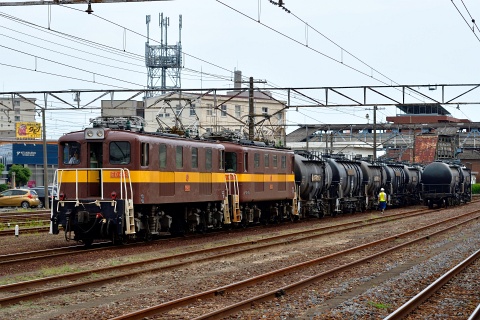 四日市から8366レとして到着した貨物列車は、機関車を JR貨物のDD51から三岐鉄道のED45重連に付け替え、三岐鉄道 3717レとして東藤原へ向かいます。