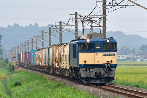 少し早起きして、下総神崎まで成田線の貨物列車を撮りに行きました。 朝一番の成田線鹿島サッカースタジアム行貨物列車は、愛知機関区のEF64が受け持ちます。 この日は、国鉄色の1023号機が運用に入りました。