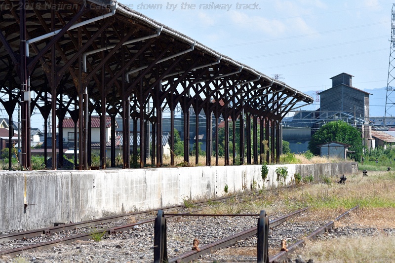 美濃赤坂駅の構内には、かつて使用されていた広い貨物ホームが残っています。