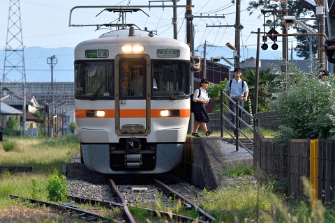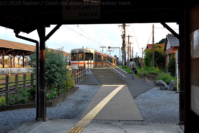 夕方の美濃赤坂駅に停車中の313系大垣行です。