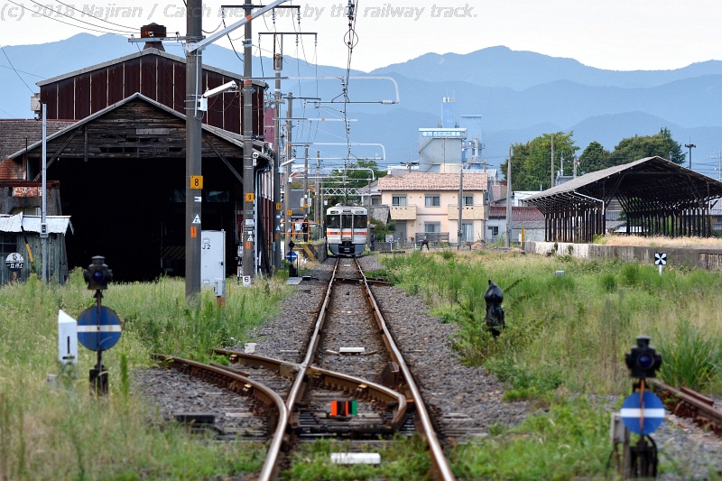写真左側にある木造の建物は、西濃鉄道の機関庫です。