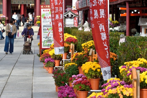 良く晴れた秋の一日、茨城県笠間の菊まつりを訪ねました。 今回で111回目をむかえる笠間稲荷の菊まつりは、日本で最も古い菊のお祭りだそうです。 笠間稲荷神社の境内や門前町に、大小さまざまな約8,000鉢もの菊の花が、また、笠間稲荷の境内には大きな菊人形が展示されます。