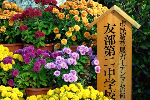 友部第二中学校の展示です。この辺りでは、小中学校の頃から菊の花に親しんでいるのでしょうね。
