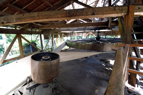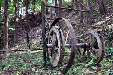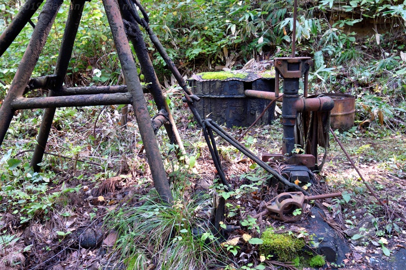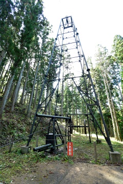 1938年掘削、深さ91m。 里山ビジターセンターの裏からつながる里山に、たくさんの石油井戸やそれに動力を伝えた設備が配置されています。