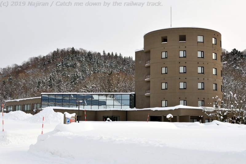 駅構内での撮影を終えて、線路に沿った公園横の道を今日の宿泊地ポンピラ・アクアリズイングに向かいます。 ポンピラ温泉という名前の方が通っているかもしれません。 1993年にリニューアル・オープンしたきれいな施設です。