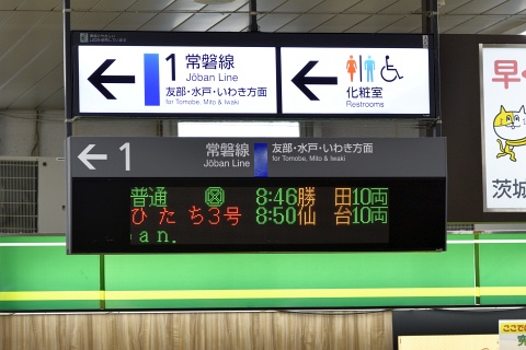 ダイヤ改正初日の土浦駅に行き、運転再開後の最初の仙台行特急となるひたち3号を、写真に収めました。