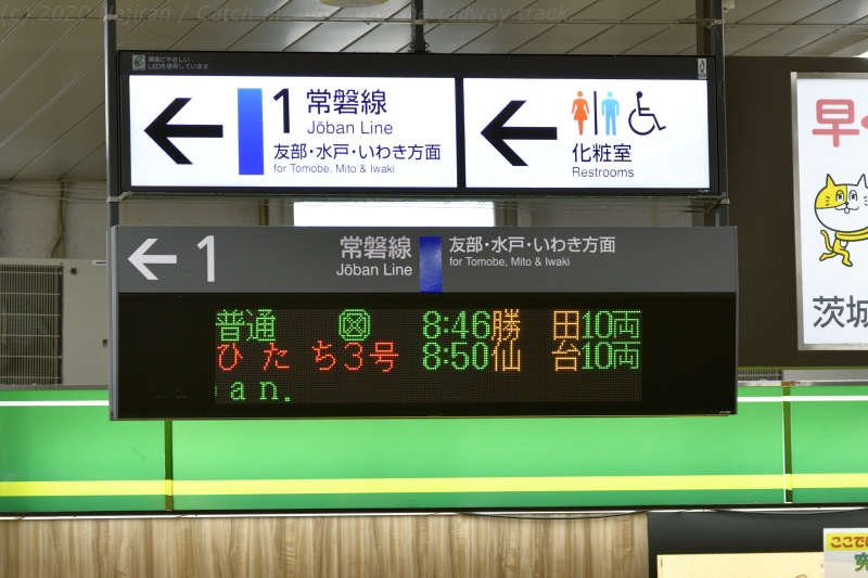 久しぶりに目にする仙台行の表示です。 ひたち3号は上野駅を8:00に出発し仙台駅には12:31に到着します。表定速度は80.5km/hです。