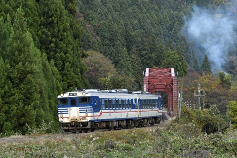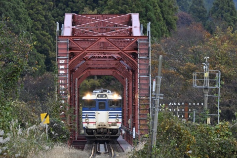 磐越西線 227D 新津行、キハ47512ほか、日出谷-鹿瀬。[2019-11, 新潟県東蒲原郡阿賀町]