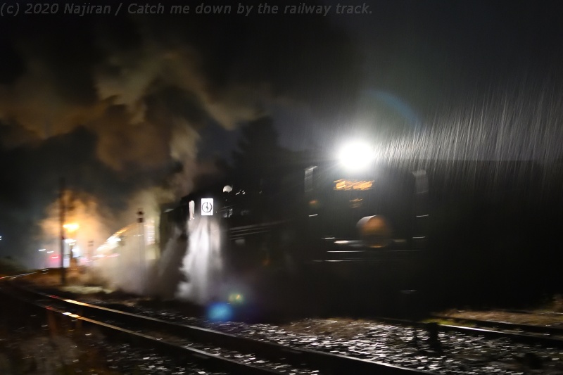 17:06 降り出した雨の中、日出谷駅を発車するばんえつ物語。