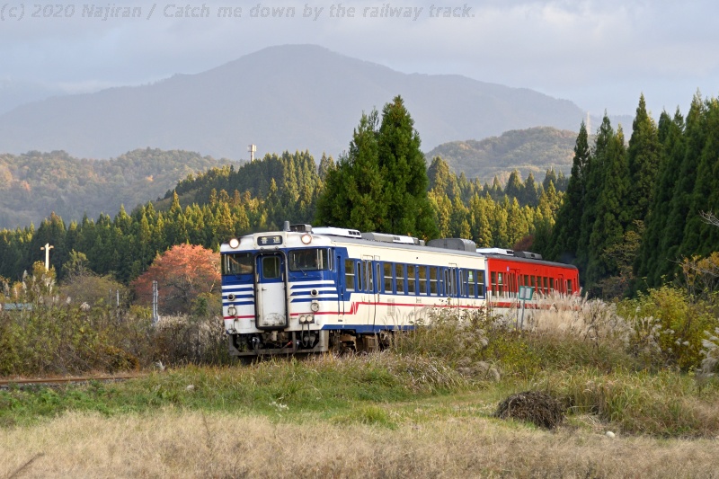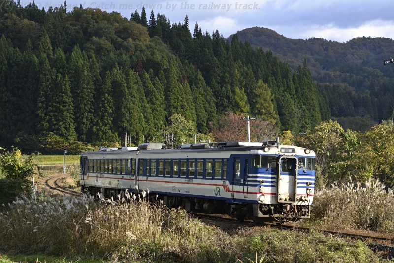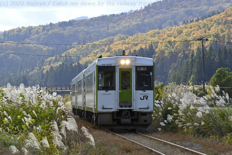 △ 磐越西線 3221D 新潟行、快速あがの。キハ110-224ほか、野沢-上野尻。[2019-11, 福島県耶麻郡西会津町]