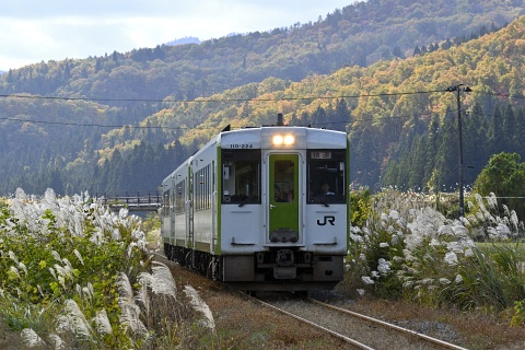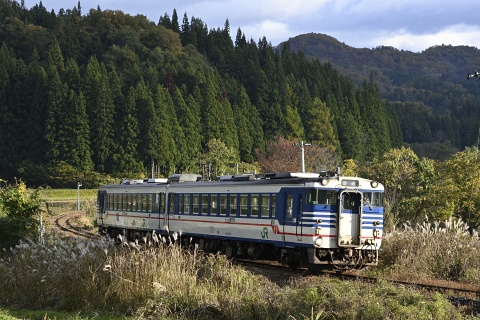 △ 磐越西線 222D 会津若松行、キハ471519 ほか、上野尻-野沢。[2019-11, 福島県耶麻郡西会津町]