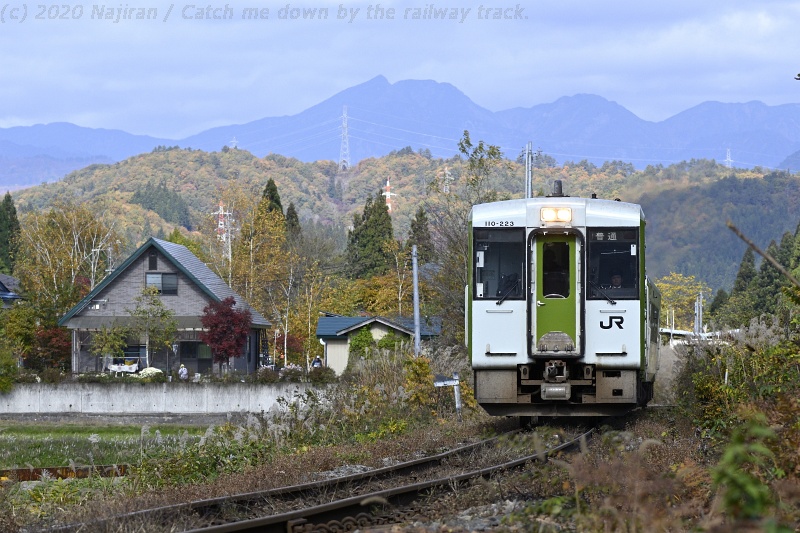 △ 磐越西線 228D 会津若松行。キハ110-223 ほか、上野尻-野沢。[2019-11, 福島県耶麻郡西会津町]