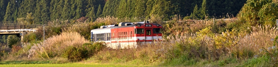 早朝の野沢駅撮影の後は、柔らかな日差しの中、西会津町の上野尻周辺の里山地帯を走る気動車やばんえつ物語をカメラに収めました。