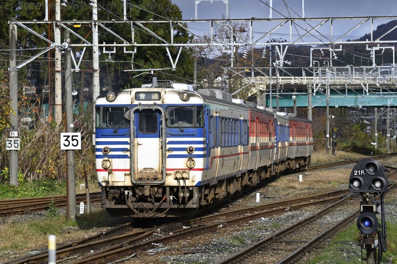 羽越本線の村上-間島間にある交直ジャンクション区間をまたぐ普通列車は、すべて気動車で運転されています。
