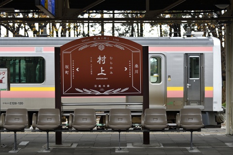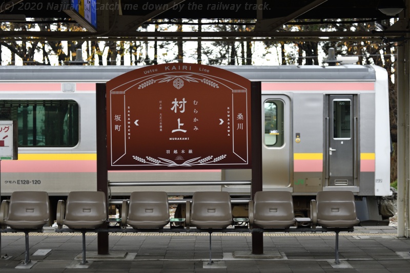 △ 羽越本線 村上駅。クモハE128-120。[2019-11, 新潟県村上市]