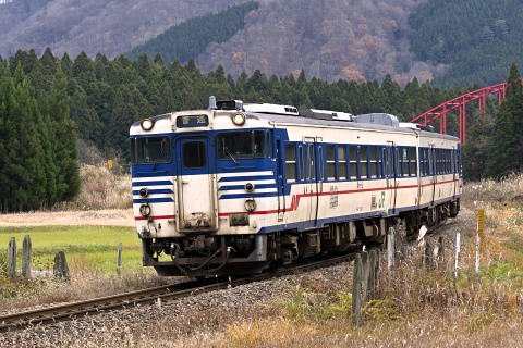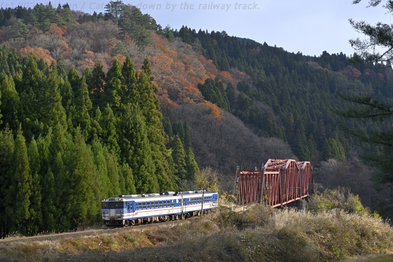 △ 磐越西線 227D 新津行。キハ471520+キハ47511、日出谷-鹿瀬。[2019-11, 新潟県東蒲原郡阿賀町]