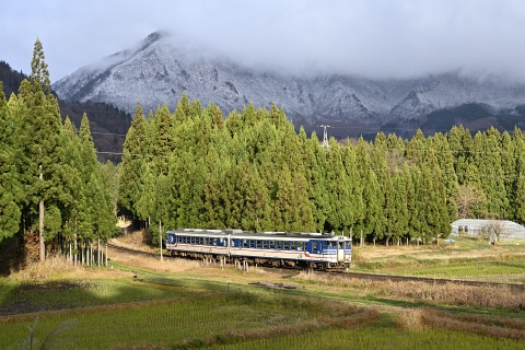 △ 磐越西線 224D 会津若松行、キハ47519(後追い)+キハ471413→、日出谷。[2019-11, 新潟県東蒲原郡阿賀町]