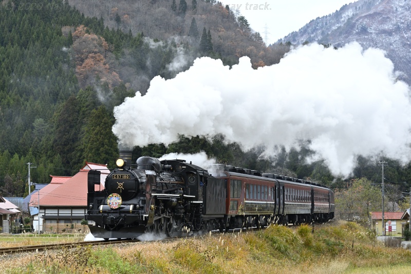 △ 磐越西線 8226レ 快速ばんえつ物語。C57180ほか、鹿瀬-日出谷。[2019-11-30, 新潟県東蒲原郡阿賀町]