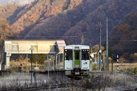 新津から乗ってきた朝の会津若松行一番列車が、三川へ向かいます。