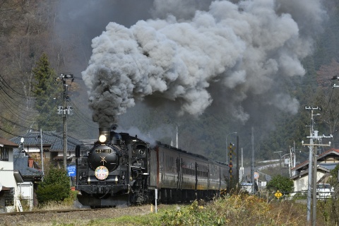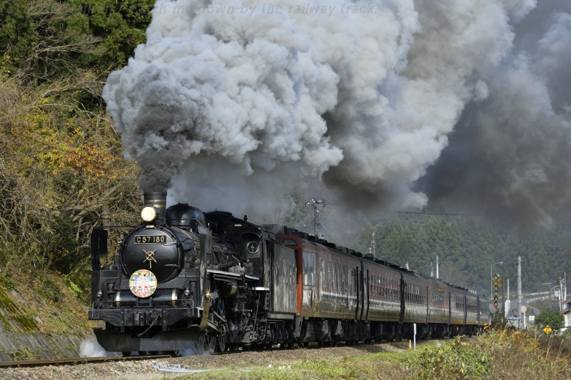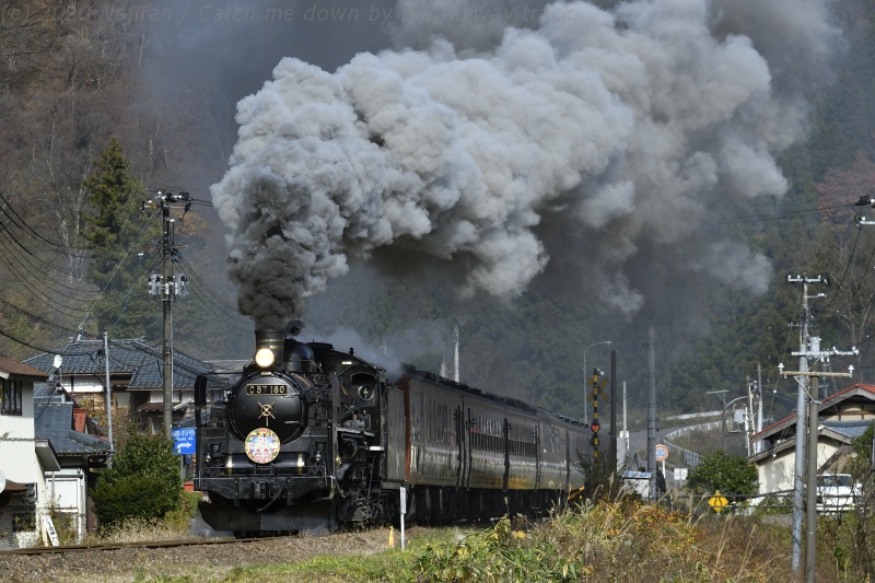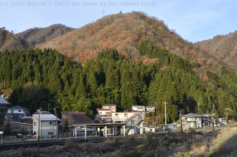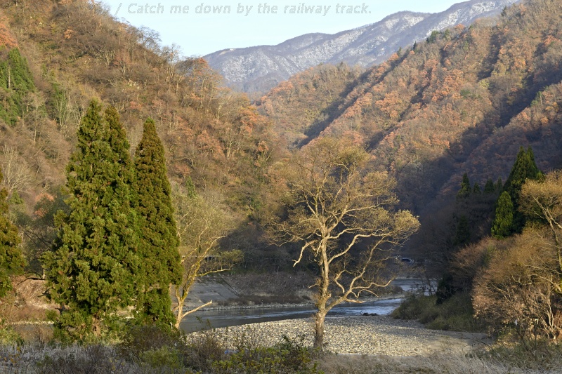晩秋の磐越西線撮影旅行の5回目。今期最終運用となる上りばんえつ物語を、阿賀野川沿いの五十島(いがしま)の集落で撮影しました。