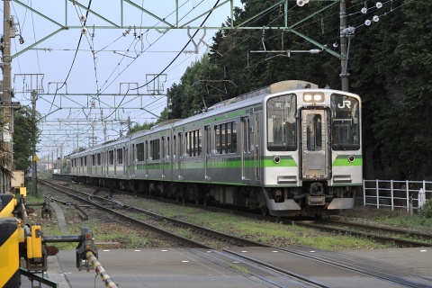 少し遅れていたようで、列車番号や行き先が分かりません。 列車上方の跨線橋は、信越本線越後石山駅~新潟貨物ターミナル間を出入りする貨物列車が通る線路です。 さらにその南側には、新潟貨物ターミナルを経由せずに東新潟駅から直接越後石山駅に至る渡り線が通っています。