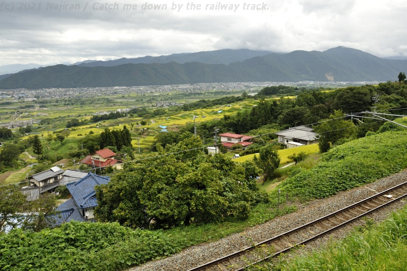 しばらく姨捨駅に停車した後、リゾートビューふるさとは再び乗客を乗せて松本に向かって出発して行きました。 それから昼前まで姨捨駅周辺に滞在し、スイッチバックを出入りする列車を撮影しました。