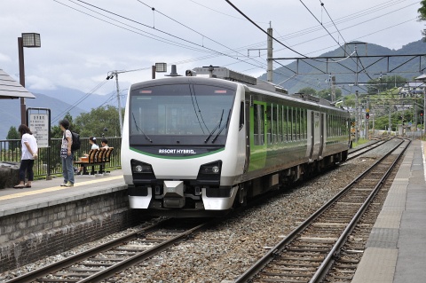 快速リゾートビューふるさとは、シリーズハイブリッド型のHB-E300系気動車で運転されています。