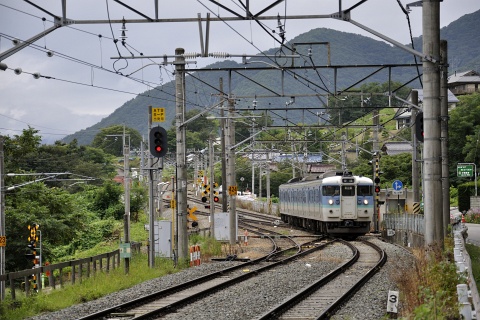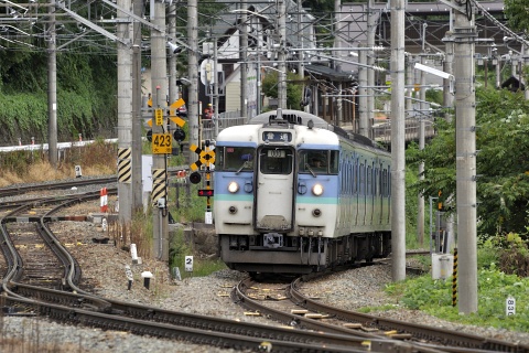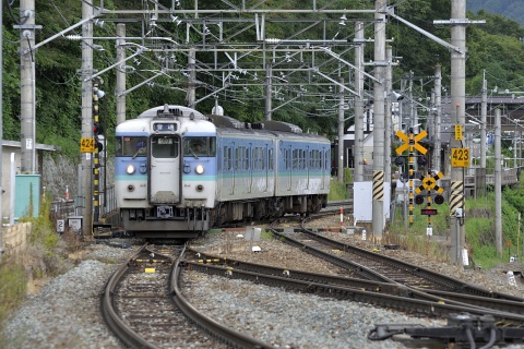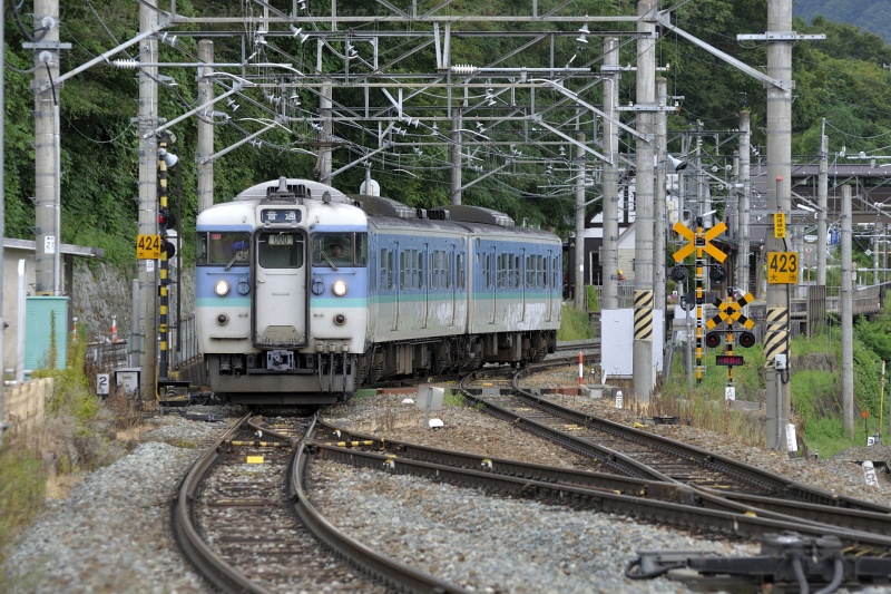 姨捨駅のホームは本線から離れた場所にあり、駅に停車しない列車は本線を通過します。 姨捨駅を訪ねた2012年当時、篠ノ井線の普通電車は長野総合車両センター(長ナノ)の115系が主体でした。 つまり、スイッチバックを利用して姨捨駅のホームに入ってくるのは、貨物列車を除けば多くが115系だった訳ですが、 同じ普通列車なども上りと下りで使う線路が異なったりするので、見ていて飽きることはありません。