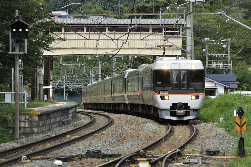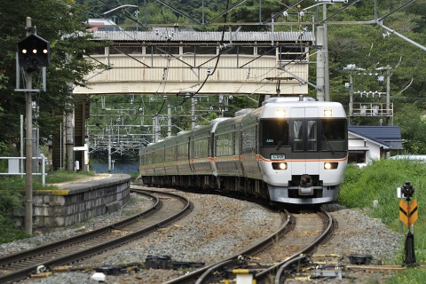 △ 篠ノ井線 1014M 特急ワイドビューしなの14号, 長野発名古屋行。クモハ383-16(海シンA204編成)、冠着。[2012.09、長野県東筑摩郡筑北村]
