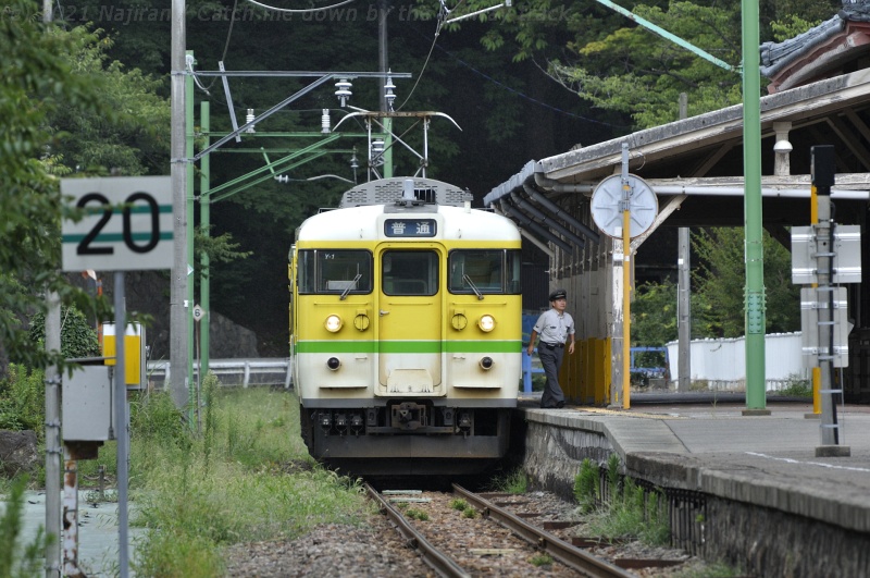 2012年9月の撮影旅行の続きです。 何かと実りの多かった篠ノ井線から新潟方面に移動し、1965年(昭和40年)に製造された電車が走る弥彦線を訪ねました。 弥彦線は、弥彦神社への参詣を目的として越後鉄道が1916年に開業し、その後国鉄に引き継がれた路線です。 1984年に電化され、その時に岡山・広島方面を走っていた115系電車の中間電動車に運転台を接合して制御電動車化した電車が、弥彦線を走りはじめました。 それが今回紹介する115系500番台と呼ばれるグループです。 改造の種車となった115系基本番台の電動車は、新潟地区で運用されていた115系電車の中でも高齢で、古いものは1965年製造です。