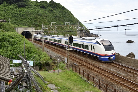 △ 信越本線 3011M 特急しらゆき1号 新井発新潟行。クハE633-1103(新ニイH-203編成)、米山-笠島。[2017.07、新潟県柏崎市]